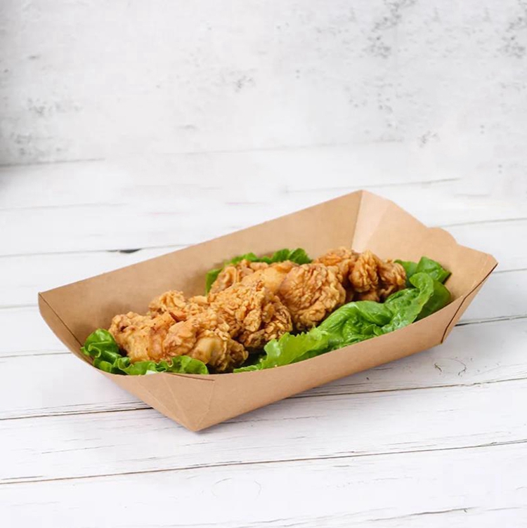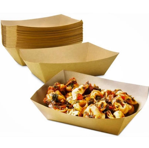 The inside of paper food trays features with food grade PE film coating,which has great performance in water and grease resistant,convenient and easy to use, you don't have to worry about sauce spilling or seeping through